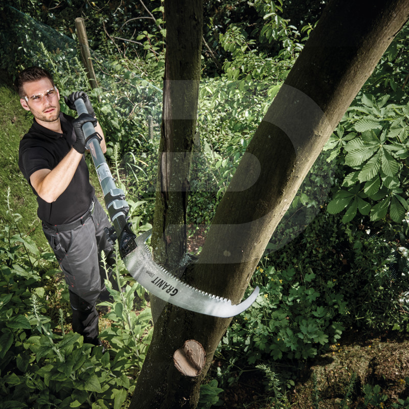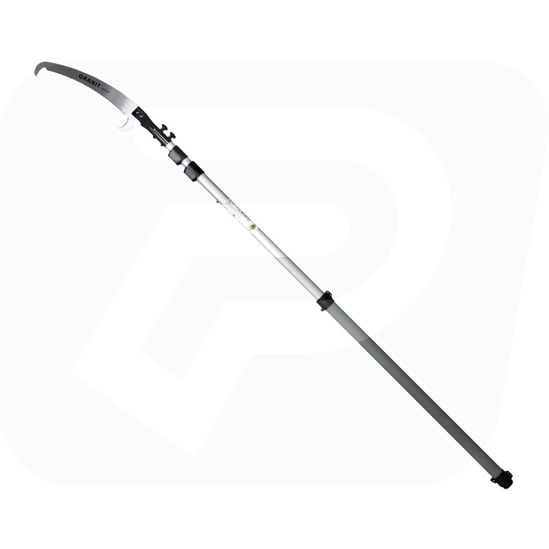 Omschrijving: • Zaagblad met gebogen blad en hard verchroomd oppervlak• Drievoudig geslepen en impulsgeharde tanden• Geïntegreerde snijranden aan de boven- en onderkant om de boomschors te raken en vastzittende takken naar beneden te trekken• Schroefbevestigingssysteem tussen zaagblad en telescoopbuis• Ovale aluminium telescoopbuis met geanodiseerde afwerking en dubbel vergrendelingssysteem en comfortabele handgreep• Zaagblad vervangbaar